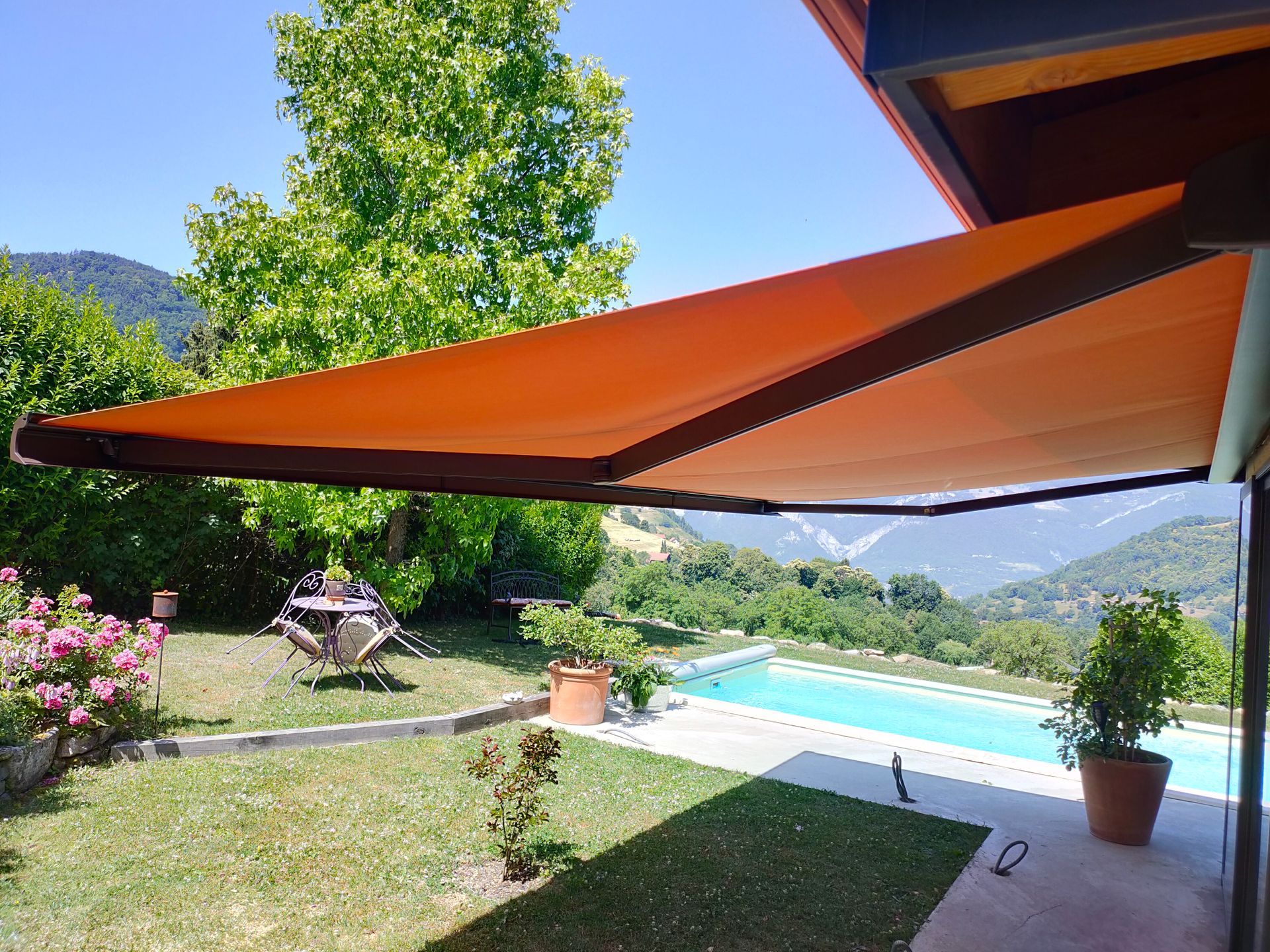 La pergola à toile enroulable qui vous protège contre le soleil et la pluie.