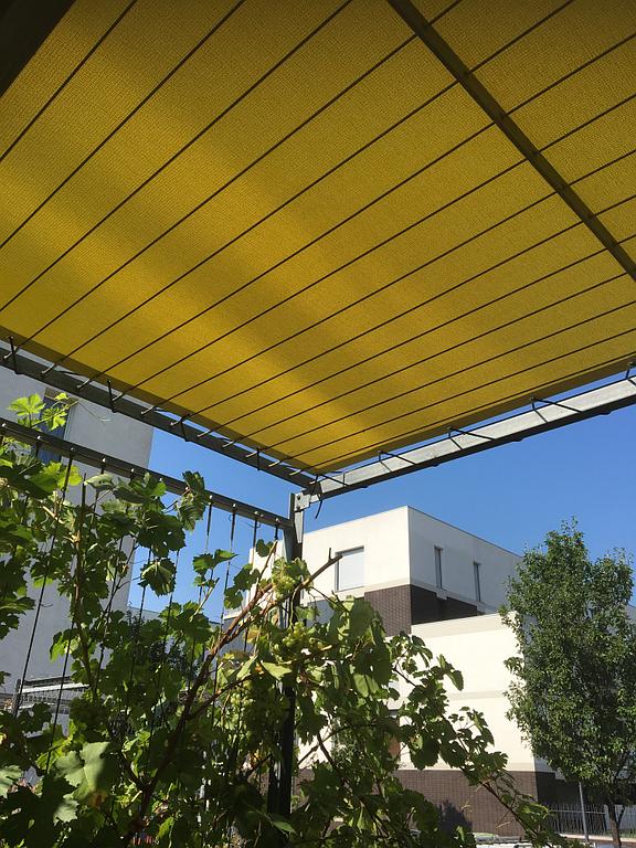 La pergola à toile fixe qui vous protège des rayons du soleil et de la chaleur.